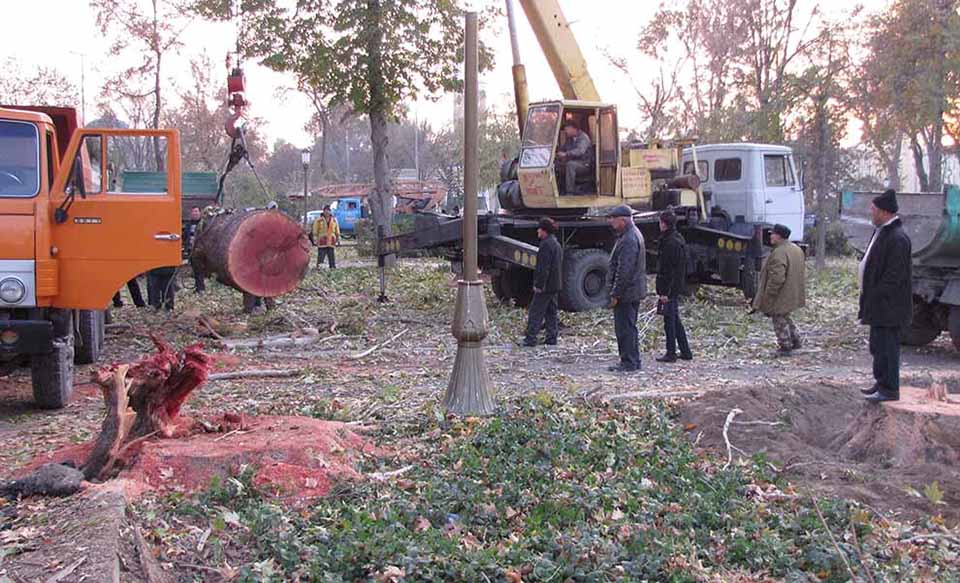 Вырубка в Сквере Амира Темура в Ташкенте, 2009 год.