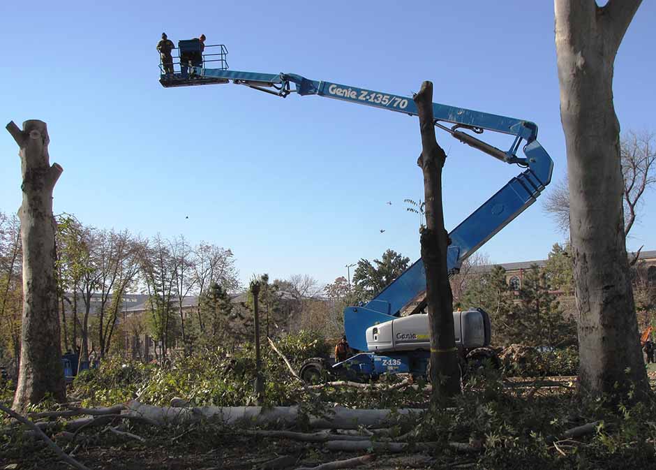 Кл: Сегодня лесоповал на Максима Горького. Средь бела дня спиливали огромные чинары . Тут же аккуратно спиливали ветки, распиливали высокий ствол на бревна и вывозили. Наверное, на свалку.