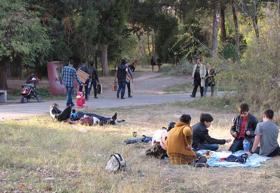 Геор: Никак не мог предположить, что семинар по парковой архитектуре Востока, на который пригласили два десятка журналистов, станет началом конца ташкентского Сквера, чтобы ни за одним деревом или кустом не мог укрыться враг. Таковы требования восточной парковой архитектуры. И как кропотливо терпеливо, тактично, можно сказать, она вползала! Неспешно растаяли кафе, павильоны… деревья… «Мне ваше дерево в степи мешает смотреть за стадом».