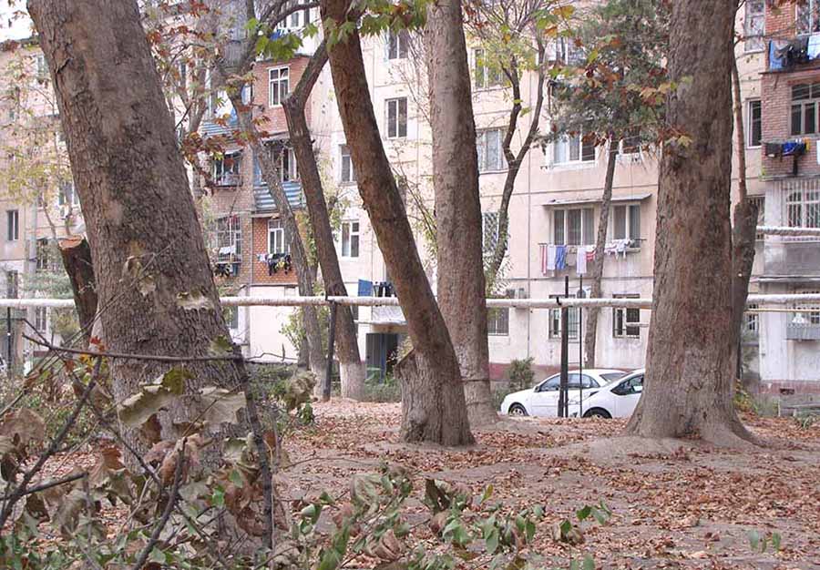 Очень скоро кварталы превратились в большой парк с домами, среди которых чинара – главная порода. Сейчас ее никто не поливает, а не мешало бы в самую сушь, ведь арыков здесь нет. Да и в центре сейчас так же.