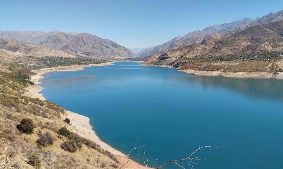 На SREDA.UZ фото Наталии Шулепиной. На фото — Чарвакское водохранилище в начале октября 2025 года.