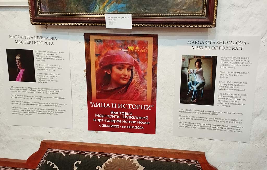 Название выставки — «Лица и истории». Маргарита Шувалова — член Академии Художеств Узбекистана и обладатель серебряной медали Союза художников в жанре «Портрет» . С точки зрения зрения любителей живописи Шувалова — лучший портретист.