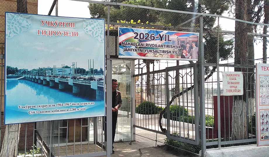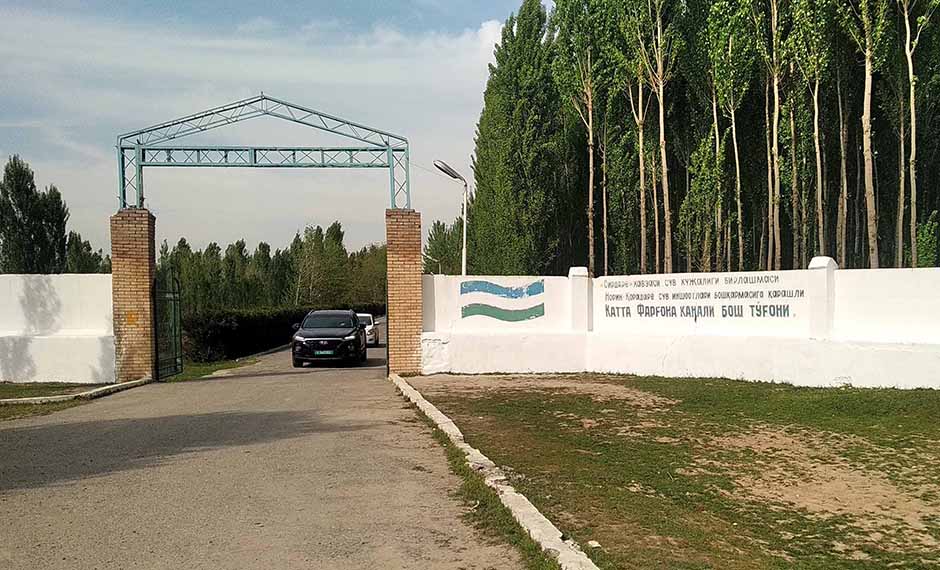 Учкурганский гидроузел — следующий объект, к которому подъезжаем. Уточним, это не ГЭС. Учкурганская гидростанция находится выше по течению на реке Нарын, на территории Кыргызстана. Мы ее увидим с гребня гидроузла-регулятора. Затворы гидроузла регулируют подачу воды в основное русло реки, в Северный Ферганский канал и в КДП — канал дополнительной подпитки Большого Ферганского канала. Про Большой Ферганский речь впереди — мы еще побываем на Нарыне у его «головы».
