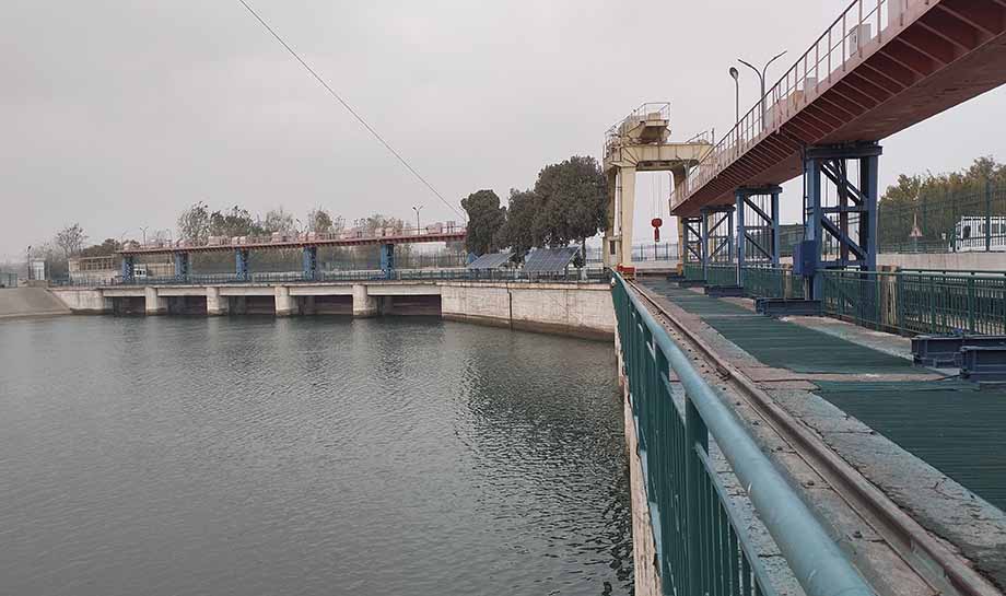 Мы находимся у перегораживающего сооружения на 145 пикете (ПК145 ЮГК). Всего на канале девять перегораживающих устройств. А нужны они, чтобы регулировать уровень воды, расход и скорость потока для равномерной подачи в отводные каналы и на орошаемые поля.
