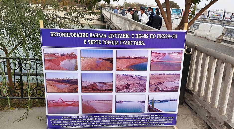 Что сделано в рамках госпрограммы — об этом рассказывает начальник Гулистанского управления гидроузлов и канала Дустлик Бахтияр Кадыров: «Во время строительных работ мы установили перемычку и проложили обводной канал, по которому пропускали воду в Казахстан. Провели реконструкцию канала на протяжении 4,75 км. Забетонированы откосы и русло. Бетонирование дало свой результат. Теперь в подвалах сухо. Ещё в планах реконструировать три с половиной километра выше моста. Как и на первом участке, создадим все элементы благоустройства: будут набережные, велодорожки, освещение».