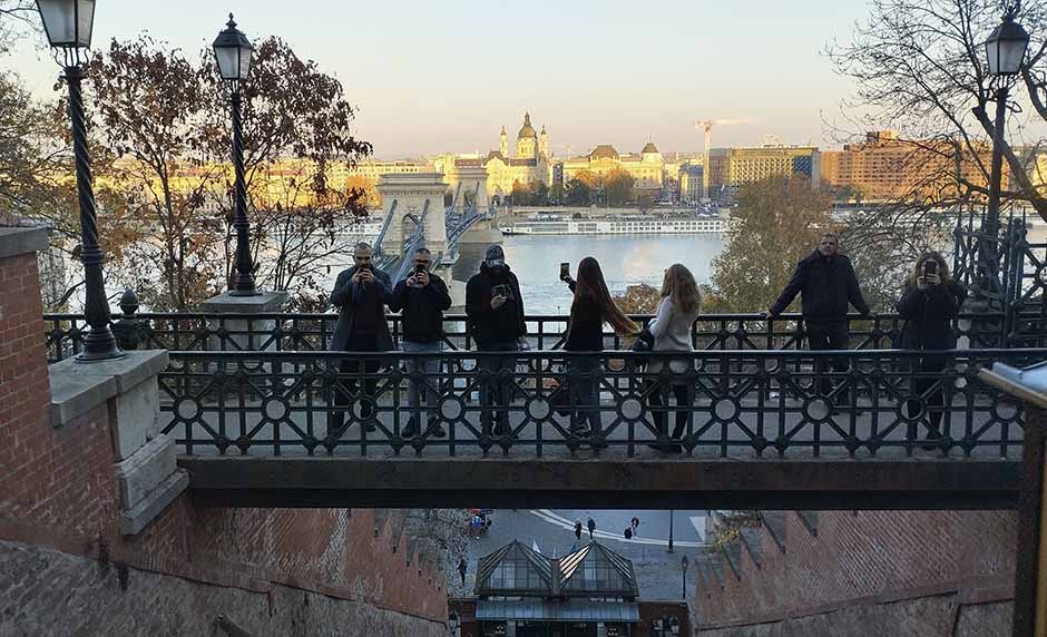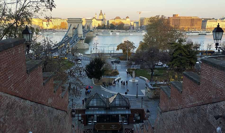 Вдоль набережной ходит нормальный трамвай, на котором и я приехала под Замковую гору. Но чем выше, тем очевидней обратное направление — пешком по Цепному мосту. Хоть раз надо пройтись над Дунаем.