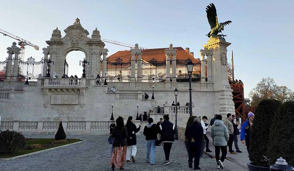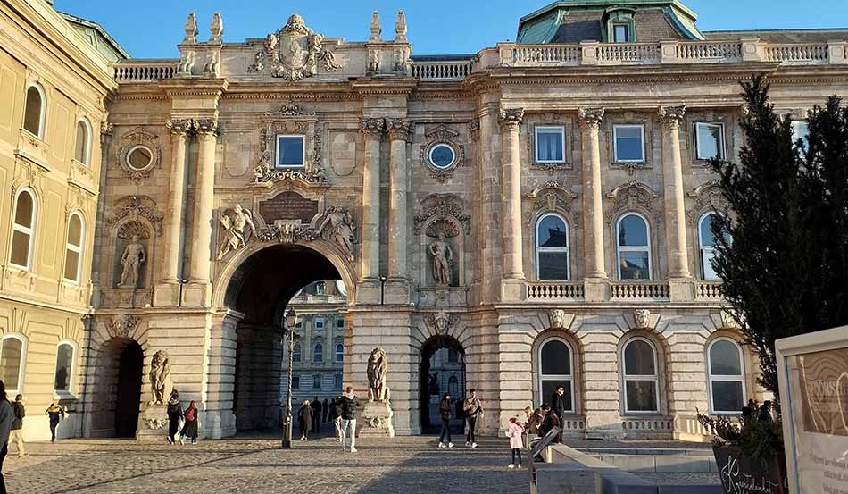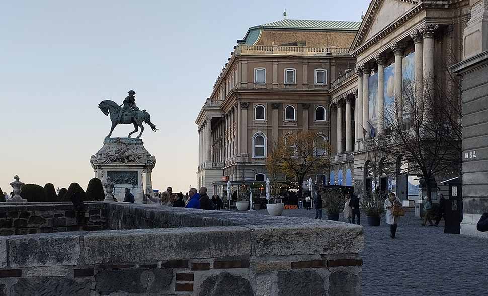 Едем на ту сторону. Длина моста 333 метра. Трамвай помогает сэкономить время, а местные жители охотно подсказывают, на какой остановке выйти, на какой транспорт пересесть, чтобы добраться до точки икс. Для себя точку икс я определила как самую высокую на Замковой горе. Там находится Королевский дворец — резиденция венгерских королей с XIII века.
