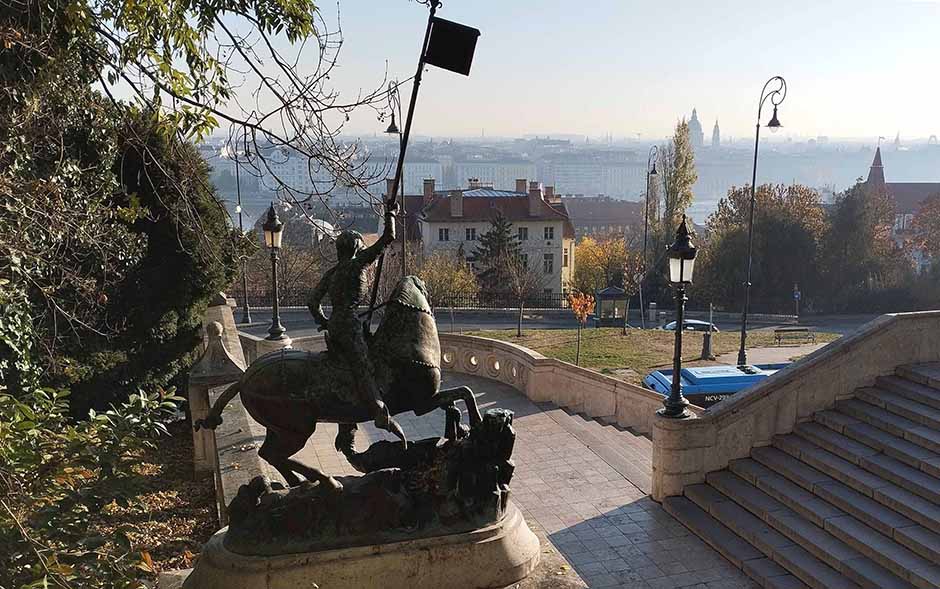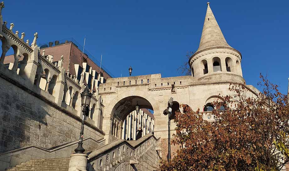 На этот раз подъезжаю на метро. Точка икс чуть дальше Будайской крепости, хотя Рыбацкий бастион и является частью комплекса. Бастион почти напротив Парламента. Поднимаюсь от подножья по лестнице. Семь утра. Тихо и пустынно вокруг.