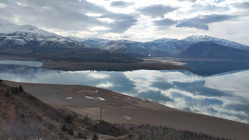 На следующей остановке водохранилище показалось похожим на реку. Как не вспомнить о том, что до строительства плотины Чарвакской ГЭС в семидесятые годы прошлого века слияние трех горных рек Пскем, Коксу и Чаткал находилось где-то здесь. Слияние и давало начало полноводной реке Чирчик. Далее в нее впадал Угам. По Чирчику у города Чирчик в павод0к проносилось до 1600 кубометров в секунду! Теперь-то река зарегулирована. Такие паводки вряд ли. Маловодье стало угрозой.