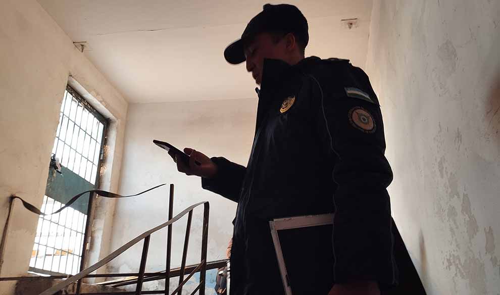 Подходит инспектор по профилактике правонарушений — сотрудник МВД, призванный действовать  согласно   Закону РУз «О профилактике правонарушений».  Требует отдать ключ от двери на крышу. Просим представиться. «Нурсултан Гуломов». Напоминаем, что крыша — общее имущество. Инспектор к ней отношения не имеет. Впрочем, как и к ключу. Обязанности инспектора по профилактике правонарушений  прописаны в статье 10 Закона, определяющей полномочия органов внутренних дел. Цитата: «Осуществляют профилактику правонарушений, в том числе выявляют, устраняют причины совершения правонарушений и условия, им способствующие».