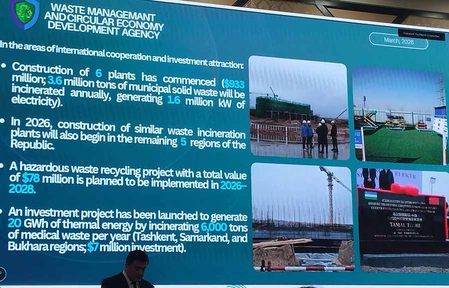 Узбекистаном на форуме были представлены перспективные направления по управлению отходами, а также развитию циркулярной экономики — «экономики замкнутого цикла».