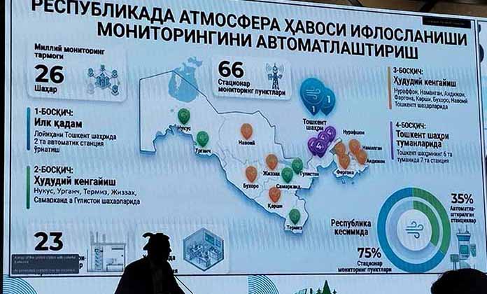 Узбекская сторона продемонстрировала действующую систему мониторинга в областях и городах с стационарными станциями мониторинга и автоматическими.